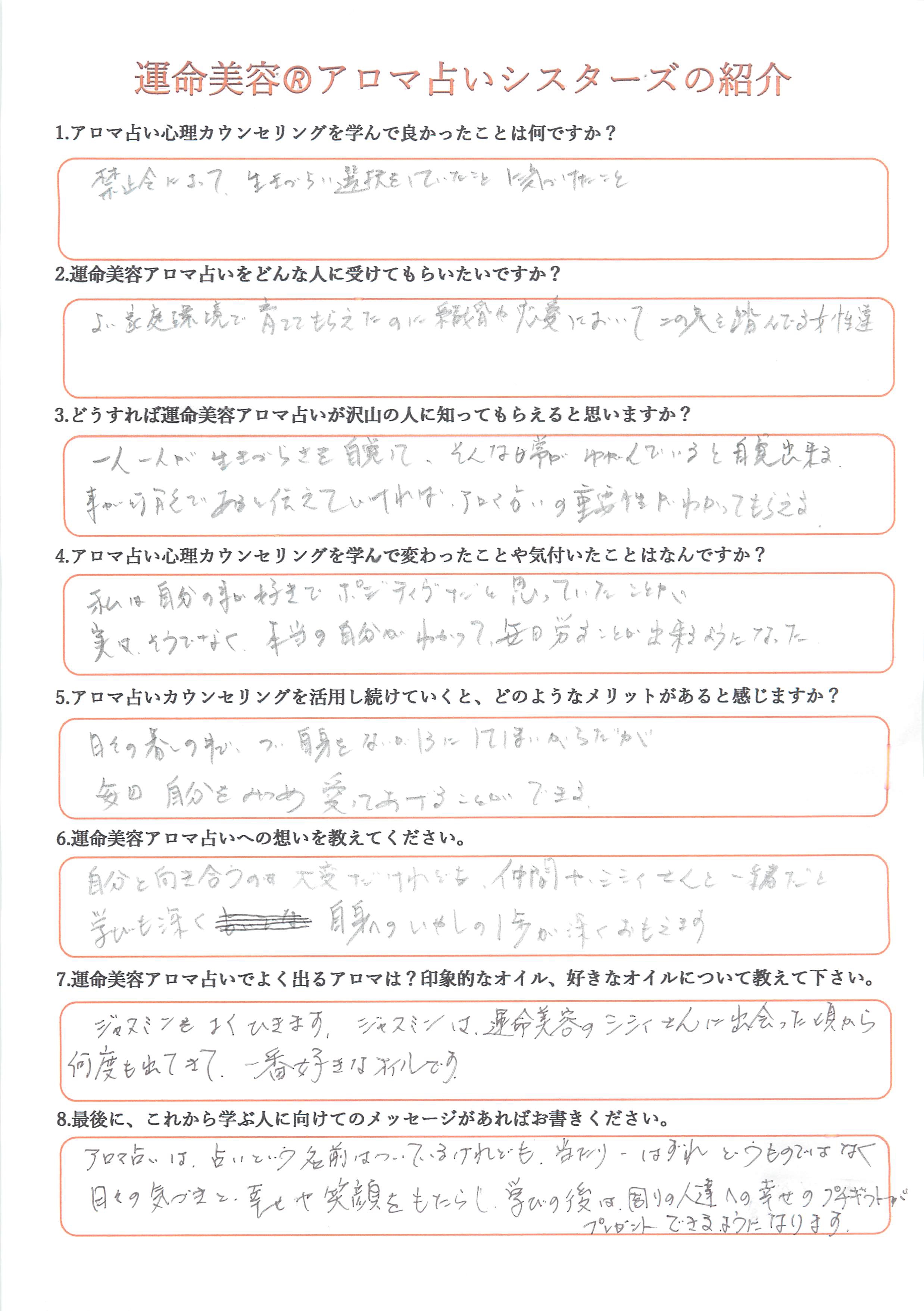 1.アロマ占い心理カウンセリングを学んで良かったことは何ですか?