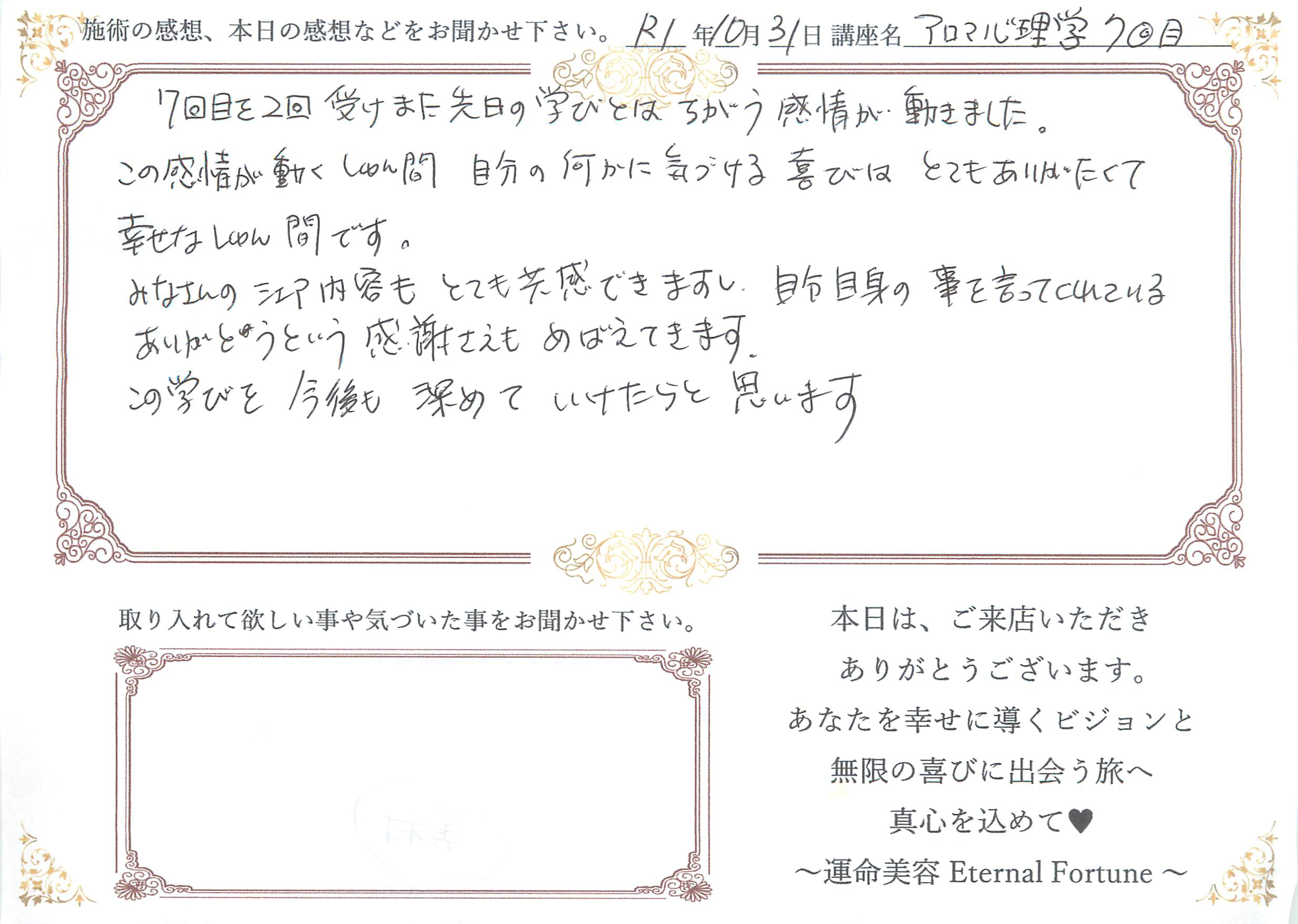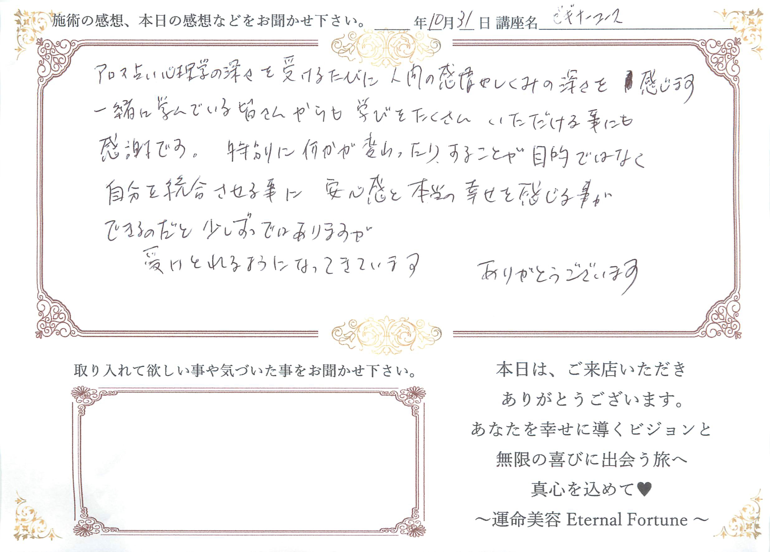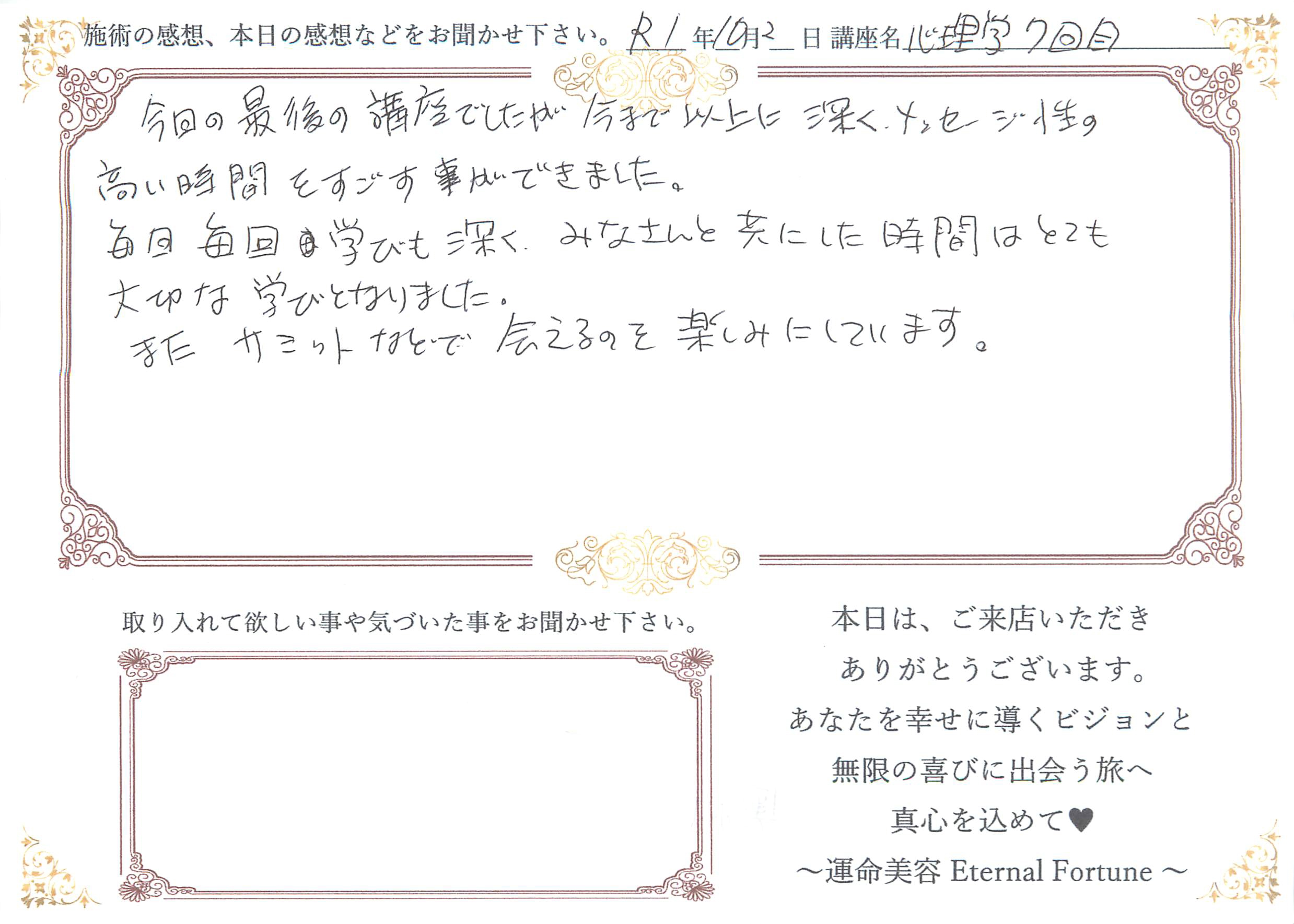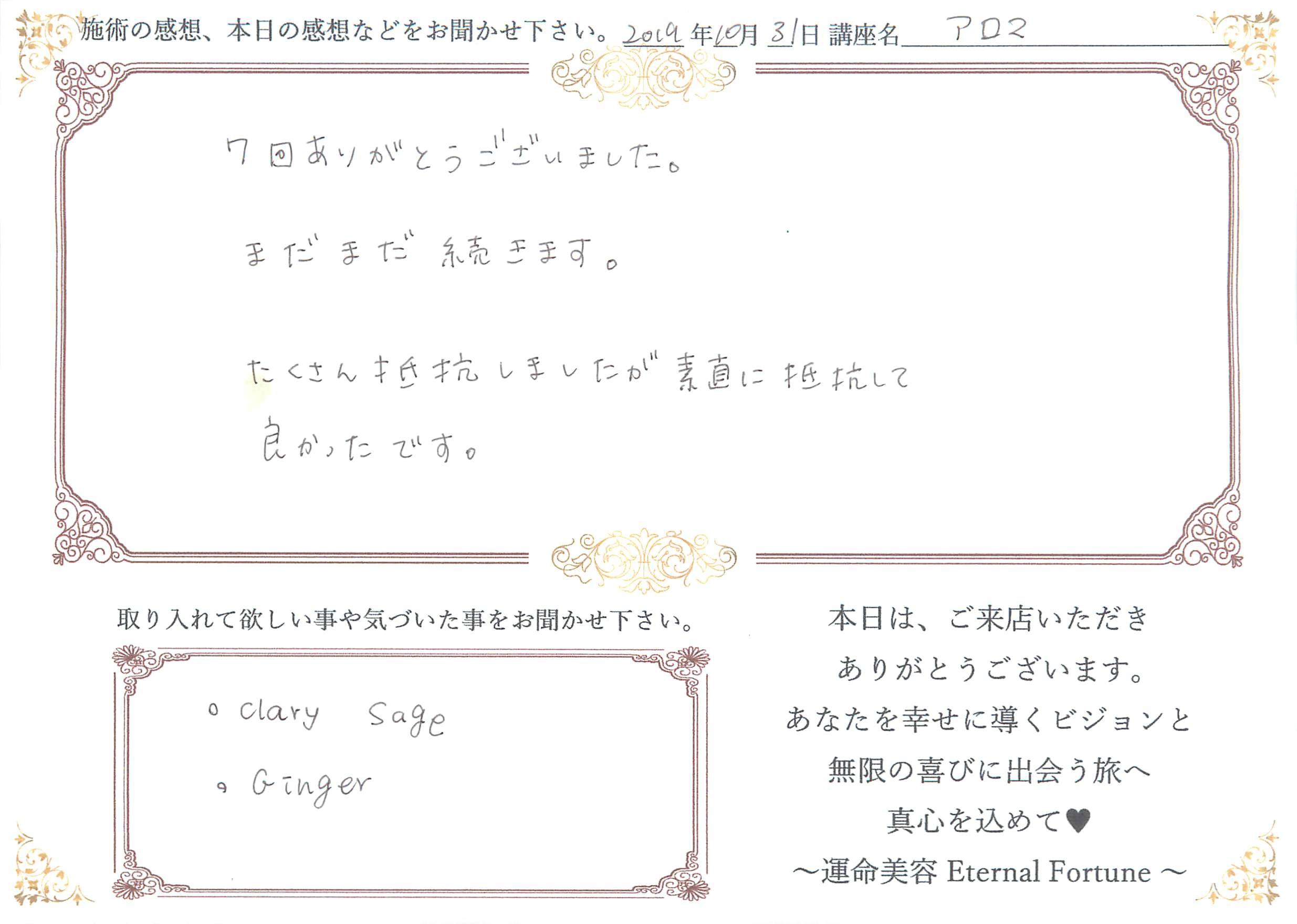 運命美容(R)アロマ占い心理学7期 7回目 感想