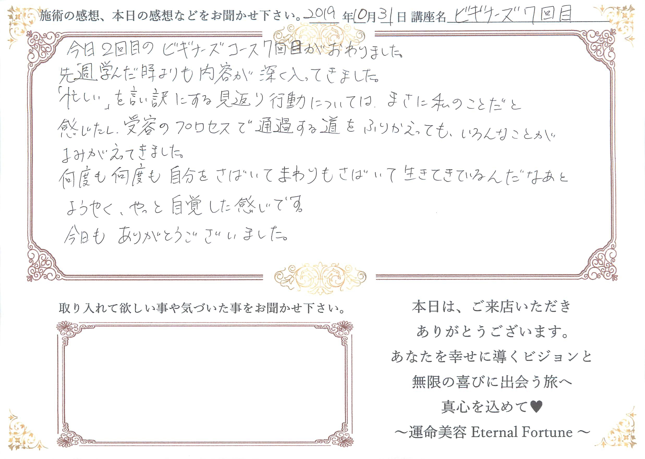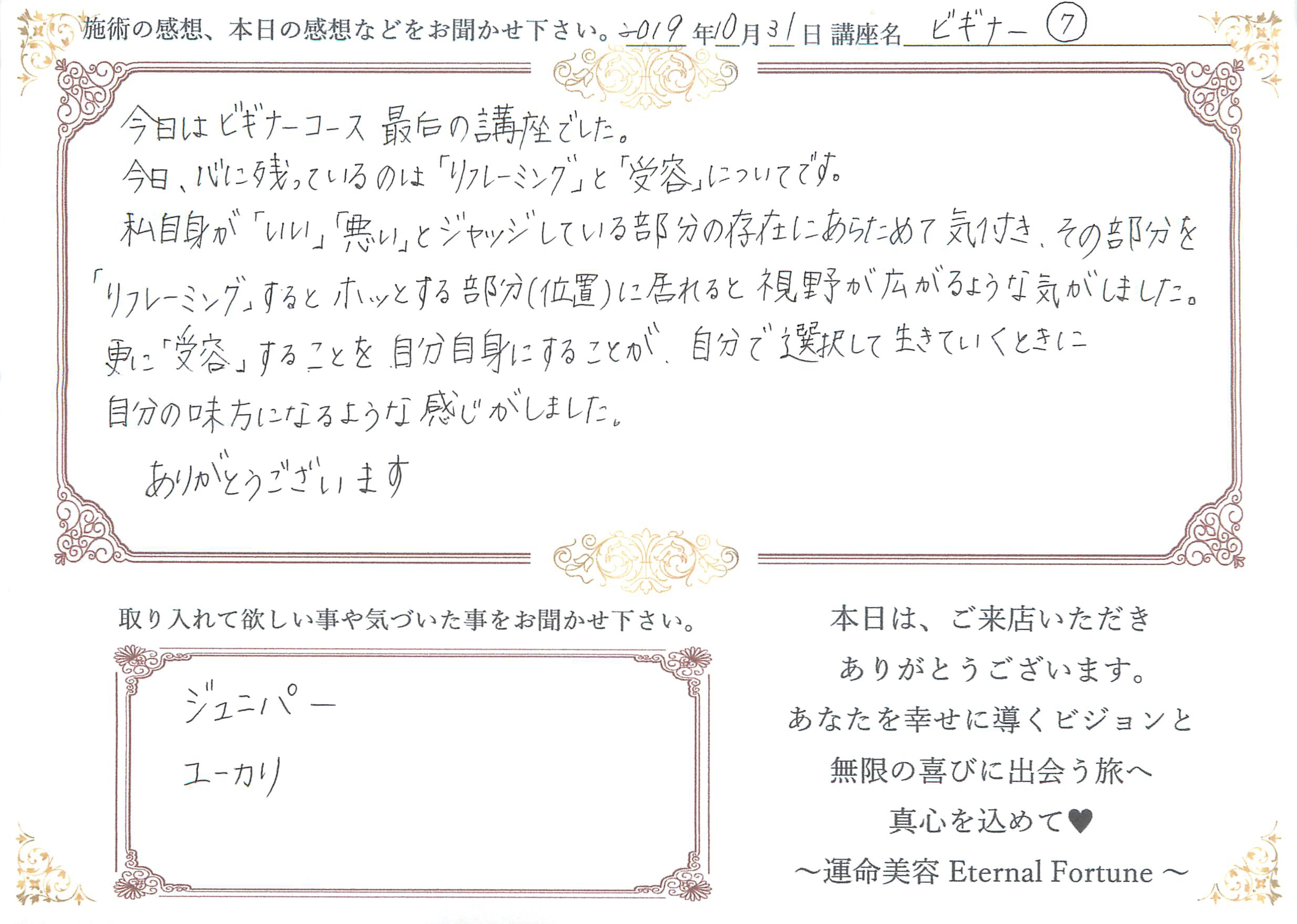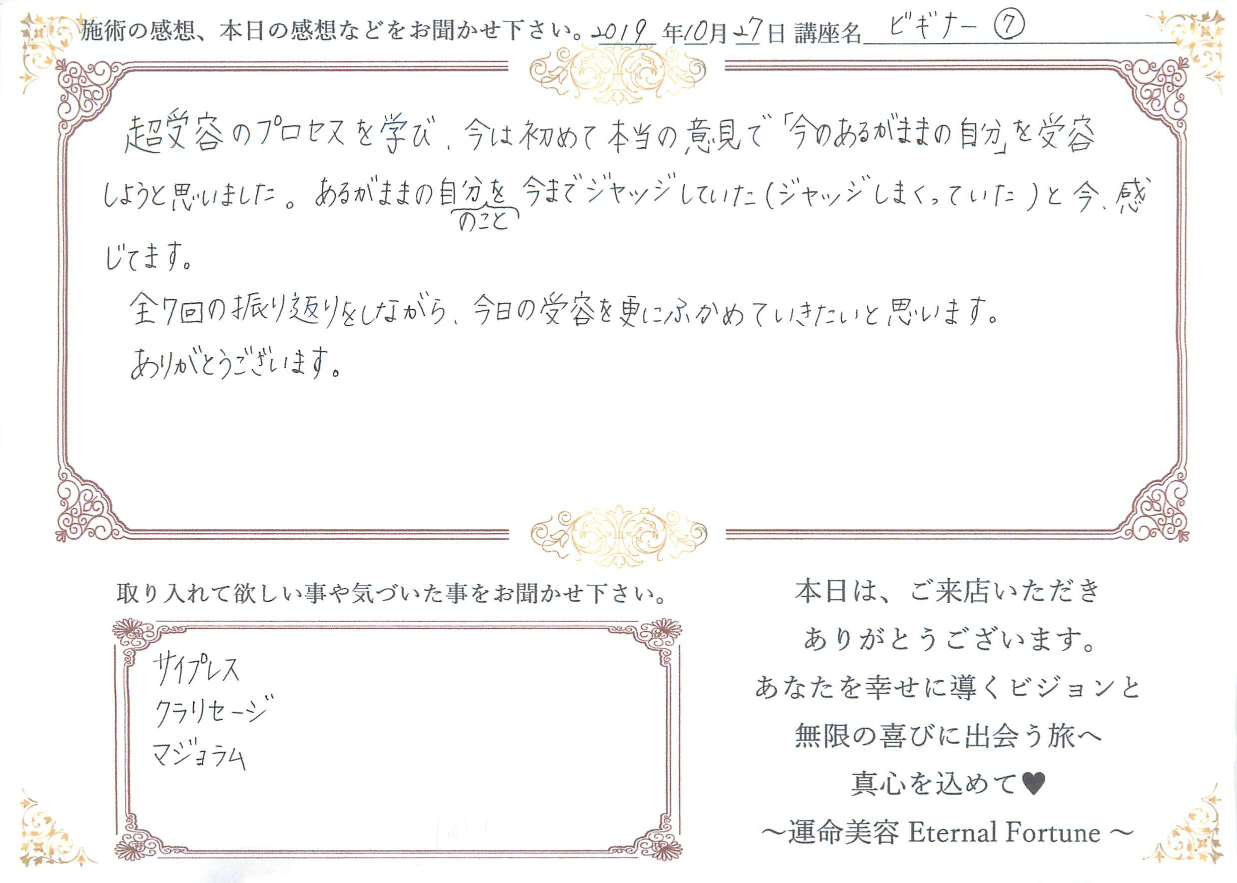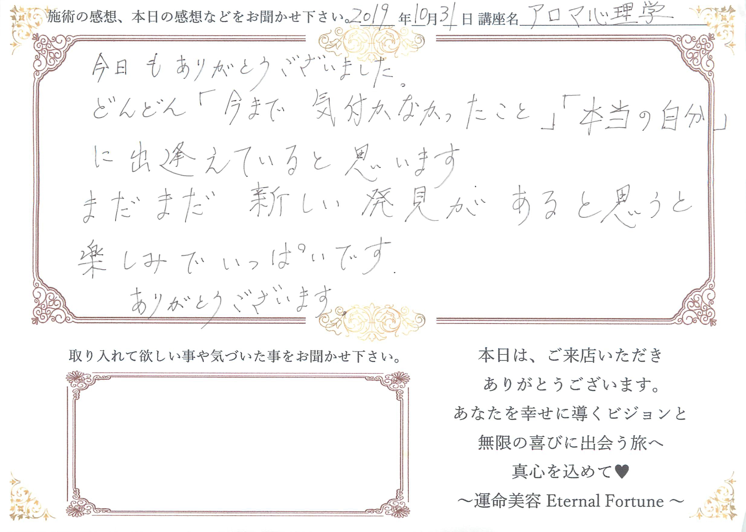 運命美容(R)アロマ占い心理学7期 7回目 感想