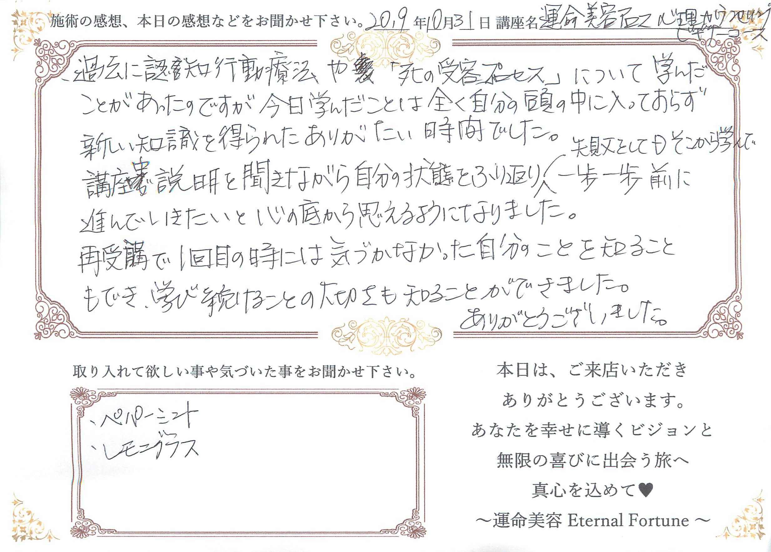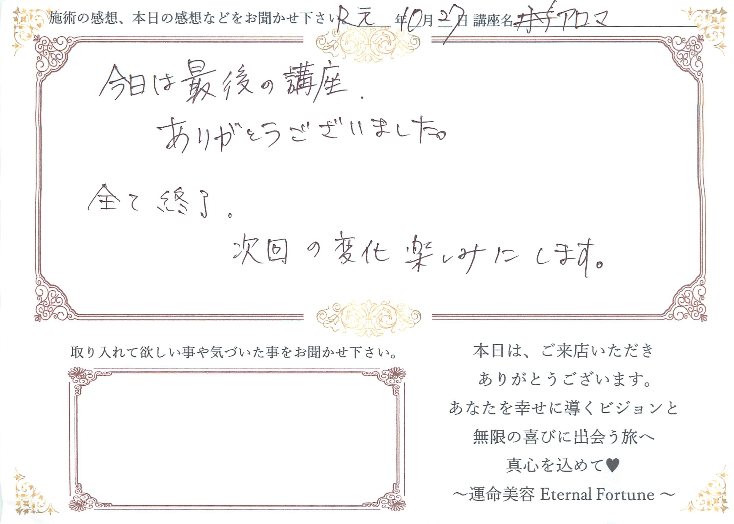 先日運命美容(R)心理学 アロマ占いビギナークラス 『平日&土日』の全7回が修了しました!
