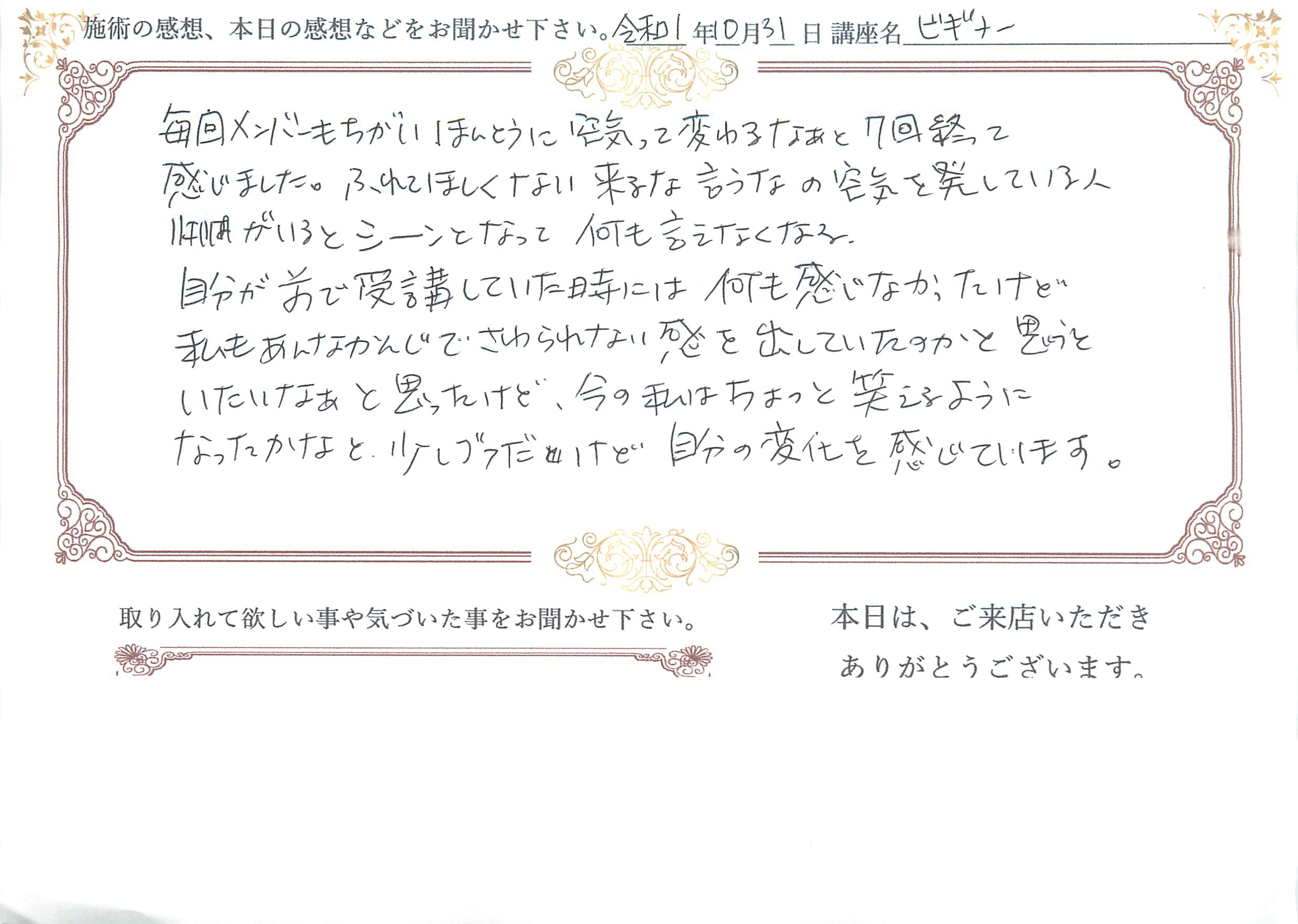 今回はビギナークラス最後の講座の感想と様子をご紹介いたします。