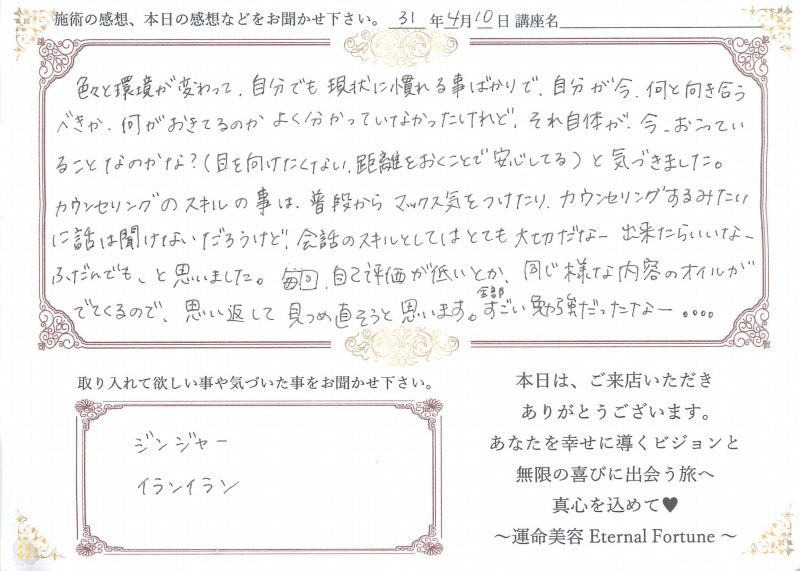 【5期】運命美容(R)アロマ占い【本科2回目】感想