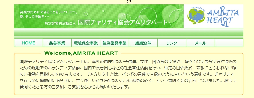 インドの聖者アンマ(正式名マーター・アムリタナンダマイー)の来日講演会プログラムのサポート活動にて、合計4万円の寄付を行わせていただいております。