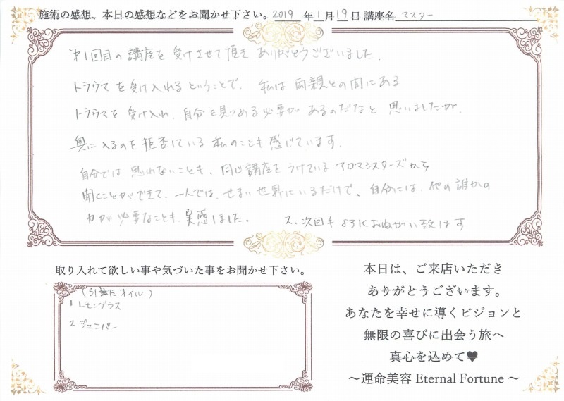 【マスター2期】運命美容(R)アロマ占いマスター講座 1回目 感想